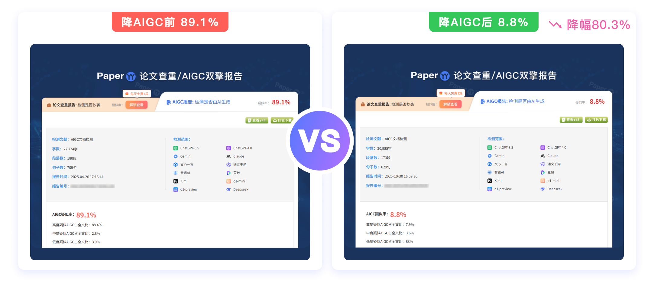 随着高校普遍引入 AIGC 检测机制,学术写作辅助工具的需求显著上升。本文对三款具有代表性的 AI 降重工具(快降重、SpeedAI、DeepRewriter)进行实测对比,从术语保护、语义连贯性、AIGC 降低效果、免费额度等维度出发,评估其在学术场景下的实际表现,旨在为研究者提供中立参考。